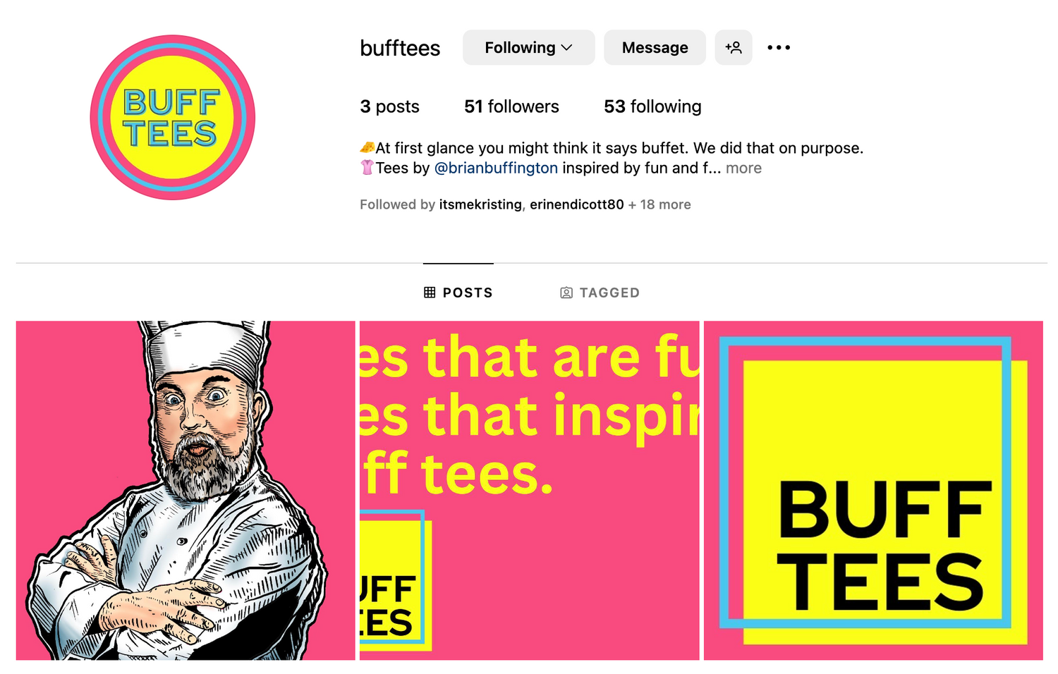 Welcome to our little corner of the internet where you can find BUFF TEES aplenty. We're so glad you're here! Each product is conceptualized by Brian Buffington and inspired by fun and a creative spirit.